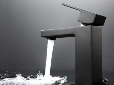 Robinet monotrou noir mat avec coins arrondis noir/or