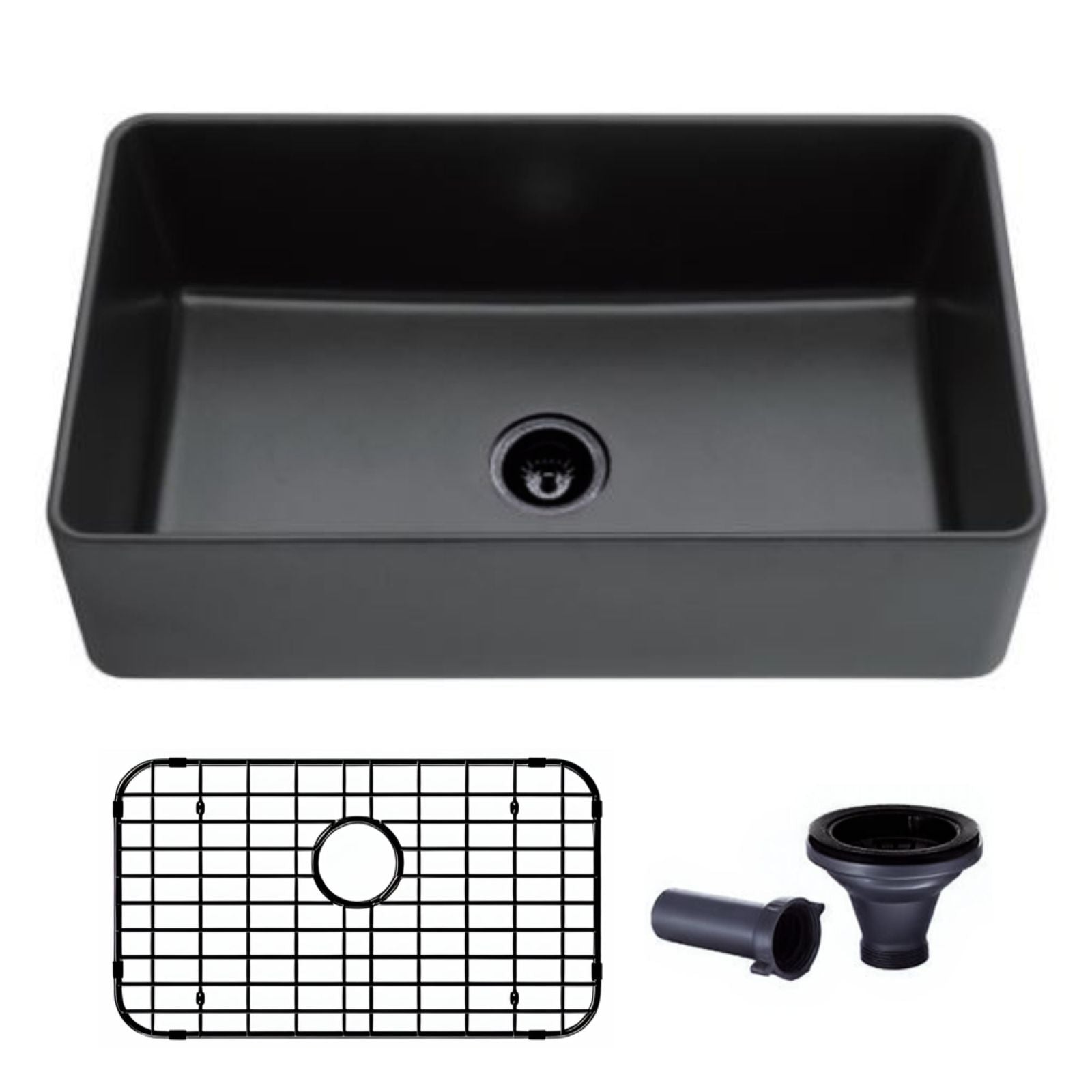 33x19 Tablier Evier de cuisine Farmhouse simple en granit composite noir avec grilles