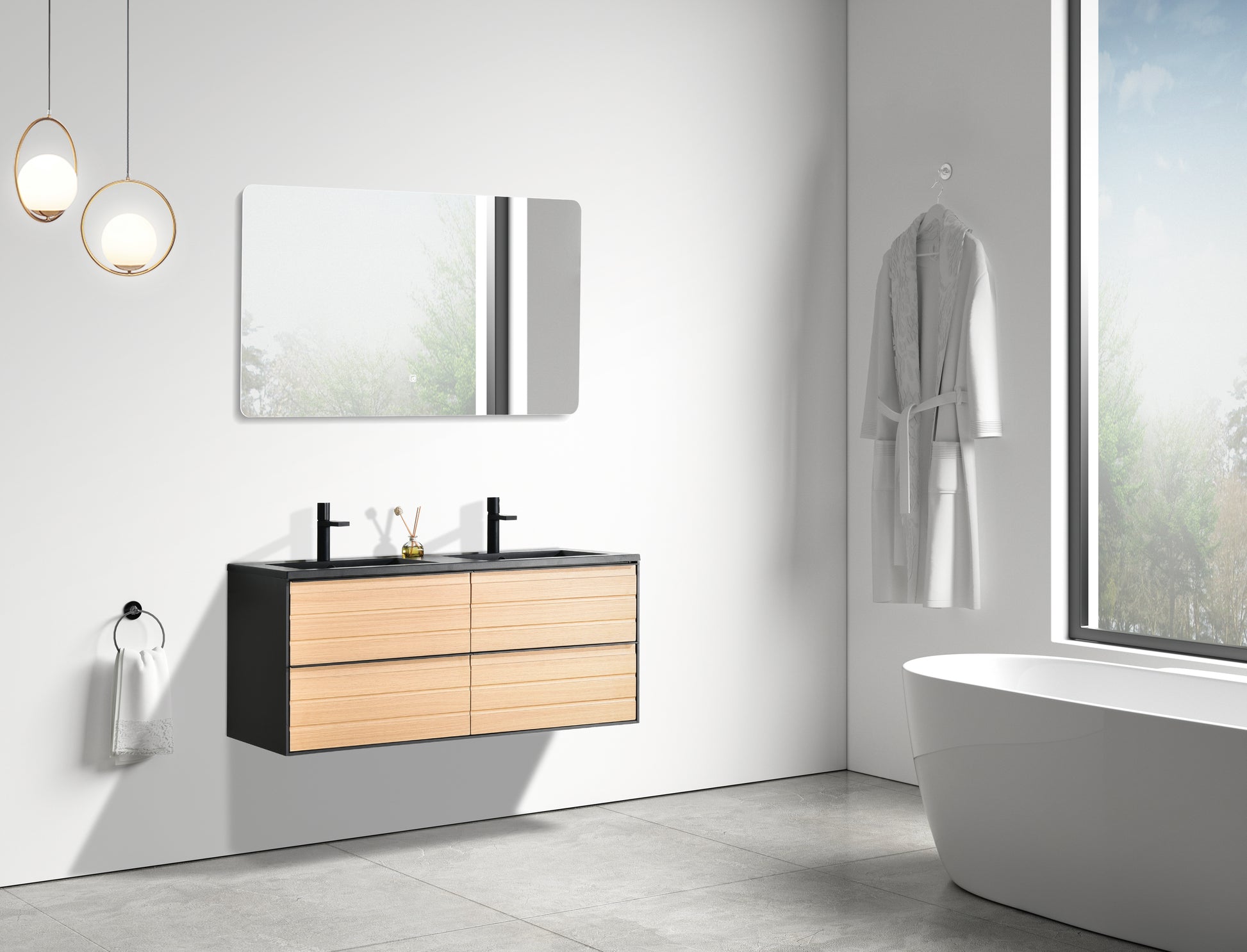 The Alexo 48" is a wall hung vanity that offers a modern and elegant design, adorned with an unparalleled Oak finish. Its design is both functional and aesthetic. This elegant and contemporary bathroom vanity is the finishing touch to your space.