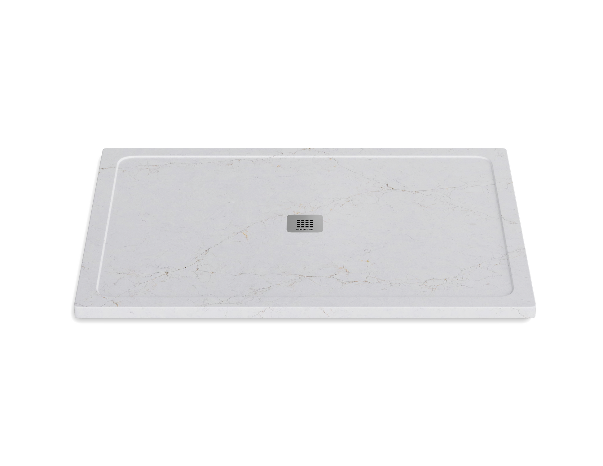 One-piece shower base extra-thin (30mm - 1 1/4″) in granite or quartz.