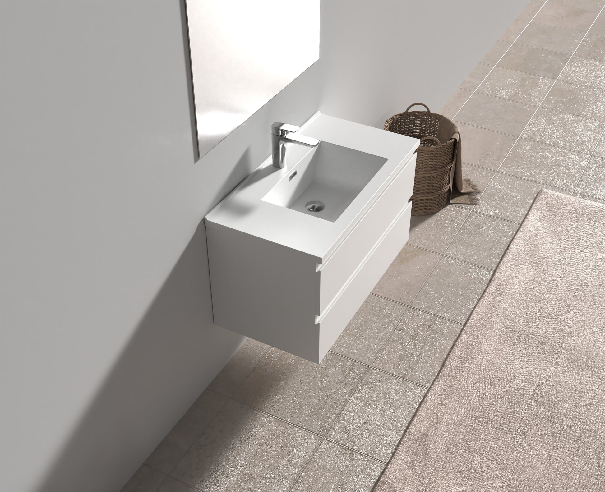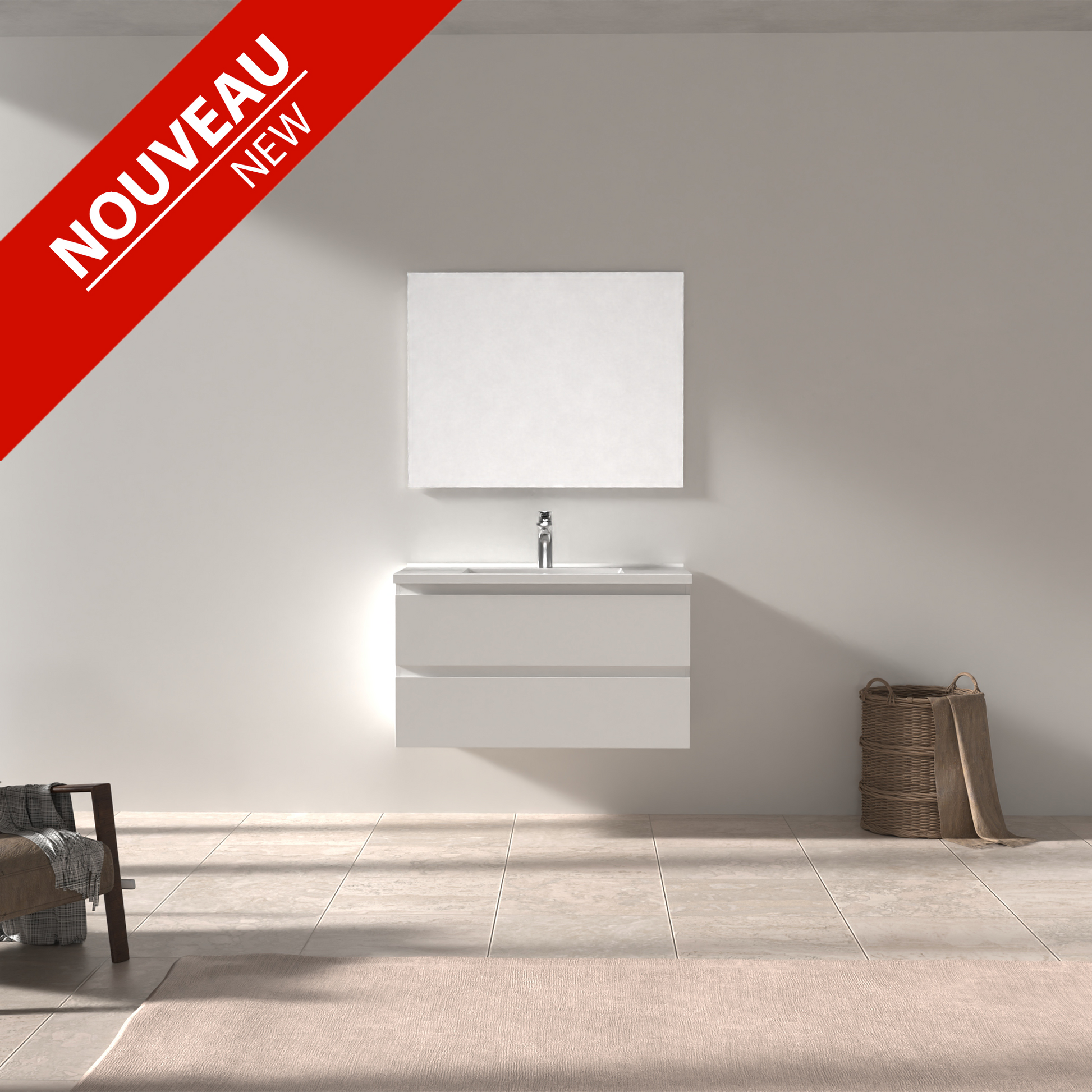 Designed to combine durability with respect for the environment, this vanity features an integrated resin basin coated with a high-quality protective varnish. Not only does it resist stains and scratches, it also retains its impeccable appearance over time thanks to its anti-yellowing varnish. What's more, with E2 certification, this vanity complies with strict environmental standards, offering peace of mind to health-conscious consumers. Please note that the faucets, mirror and mechanical bungs are not included, and the product is not pre-assembled. However, an assembly service is available at an additional cost.